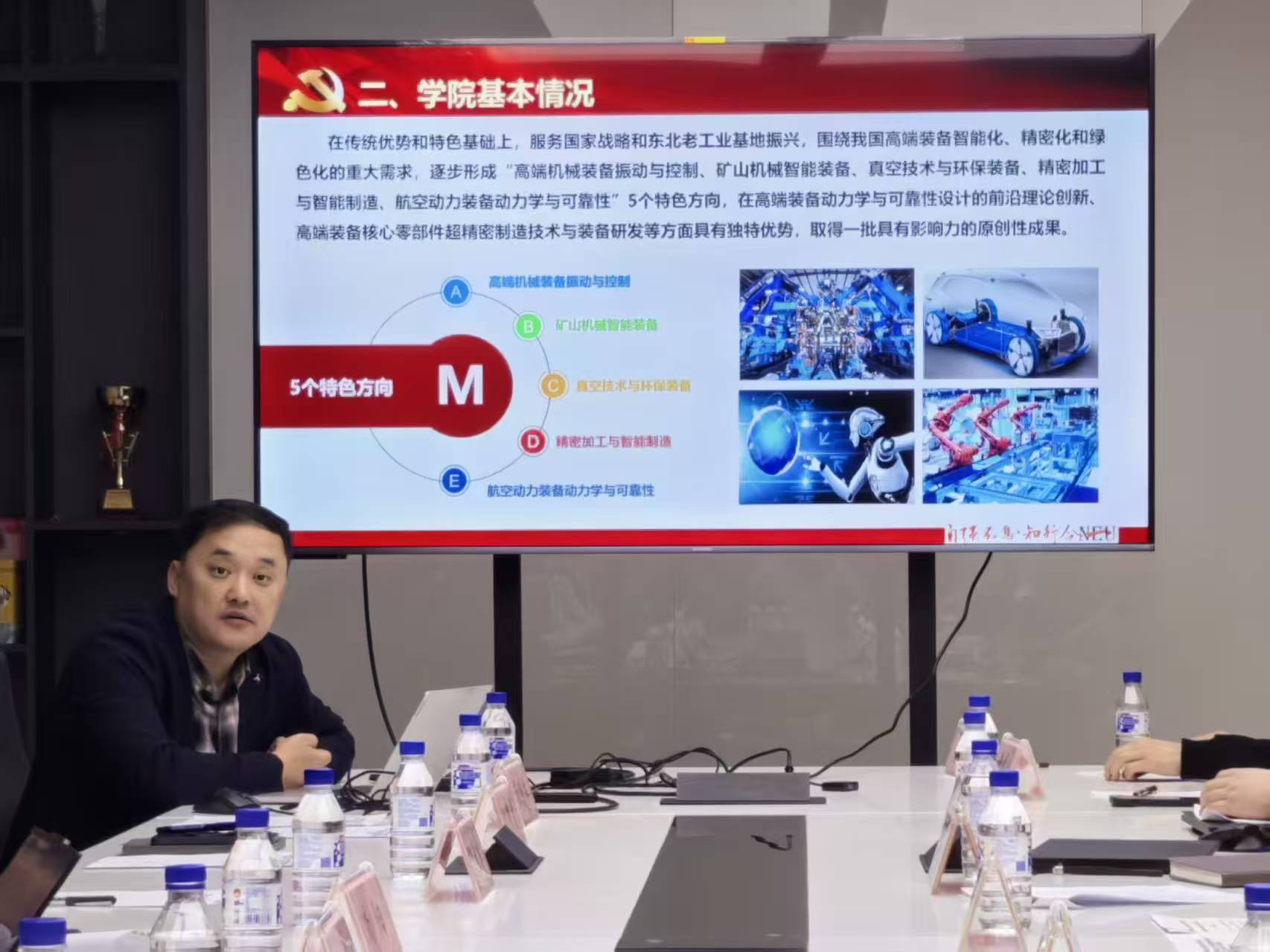 东北大学机械工程与自动化学院党委副书记兼副院长孙坤作报告 随后,邵明振作题为《红色引擎驱发展 共建融合聚动能》的专题报告。报告介绍了部门的基本情况、科研平台建设、在研重点项目进展以及党建工作的特色实践,展现了研究部在光电对抗领域持续攻关、服务国家重大需求的使命担当。