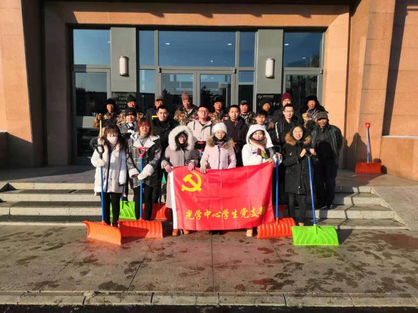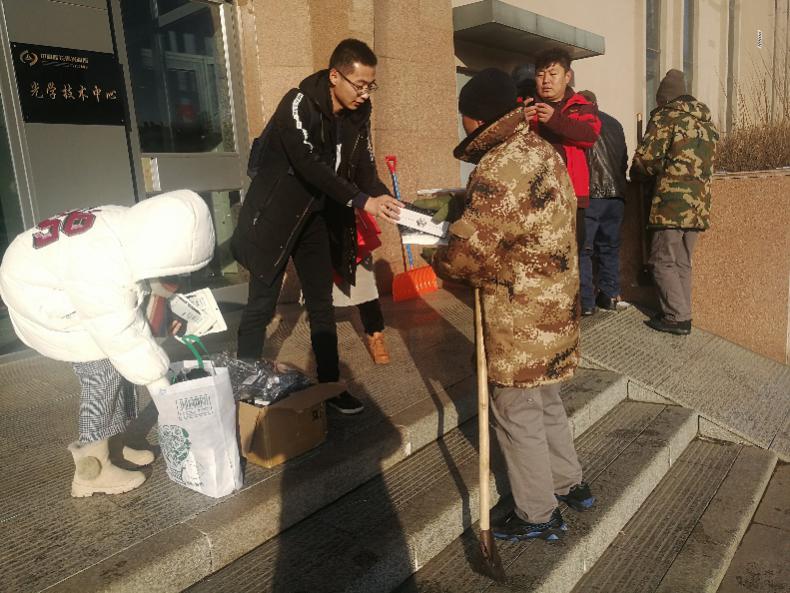 随着长春第一场大雪的到来,气温骤降。为了保持交通通畅,户外环卫工人们冒着严寒扫除道路上厚重的积雪。光学中心学生党支部与物业公司环境与客服中心主任张鑫沟通后,于11月19日在光学中心门前为20个户外环卫工人送去冬日温暖。党支部为所内的每个户外环卫工人分别购置了一个保温杯、一副手套和一个口罩,此外还组织光学中心学生党支部的党员、积极分子和学生参加到扫雪工作中,为工人减轻工作量,也锻炼培养支部成员甘于奉献的精神。