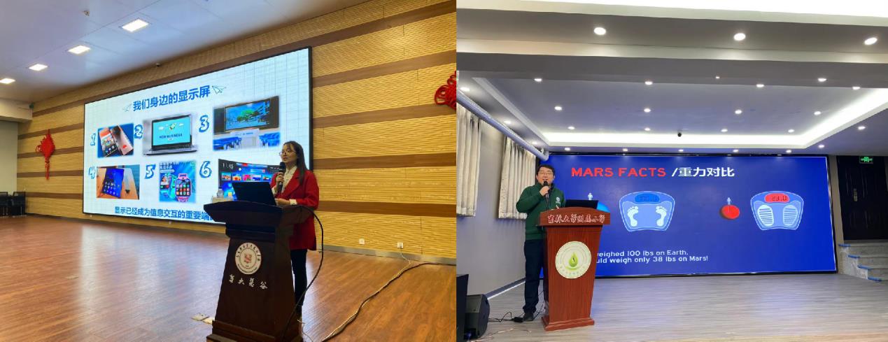 在吉大慧谷的首场报告由发光室吕营带来,生动讲述了对于显示屏的前世今生、未来发展、以及支撑这些进步的关键材料和技术突破的思考,从生活着眼,以小见大,由浅入深,激发了在场学生对科学探究的热情,现场氛围空前热烈。