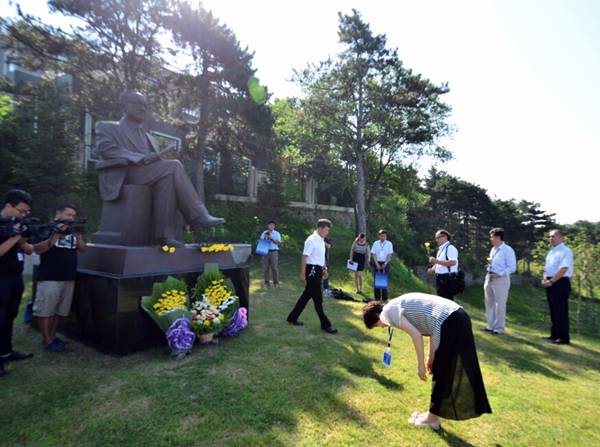 当日,70 余位中国科学院院士和中国光学领域专家在王大珩雕塑前深深鞠躬并敬献菊花。专家们还参加了王大珩学术与教育思想暨国际光年学术研讨会,交流并探讨光学课题。