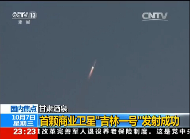 10月7日12时13分,中国在酒泉卫星发射中心用长征二号丁运载火箭成功将1组“吉林一号”商业卫星发射升空。标志着中国航天遥感应用领域商业化、产业化发展迈出重要一步。 “吉林一号”商业卫星组星包括1颗光学遥感卫星、2颗视频卫星和1颗技术验证卫星,工作轨道均为高约650公里的太阳同步轨道。