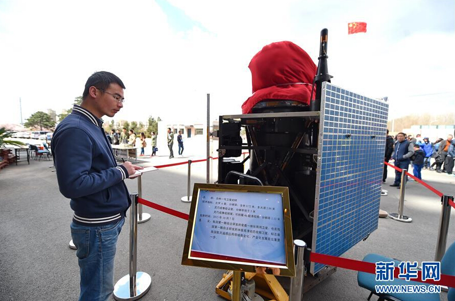 4月23日,市民在=>乐彩汇参观展出的“吉林一号”卫星初样,它是我国第一颗自主研发的星载一体化商用卫星。新华社记者 张楠摄