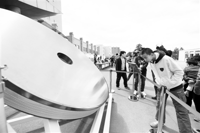 4月23日,乐彩汇(简称=>乐彩汇)举办以“科技创新 追梦未来”为主题的航天日科普系列活动。通过科普讲座和航天相关产品展览向公众展示航天科研成果,为市民进行航天知识科普,迎接“中国航天日”的到来。图为市民在=>乐彩汇参观展出的直径两米单体碳化硅反射镜坯,它是航空、航天相机或地基望远镜的反射镜材料。新华社记者 张楠摄