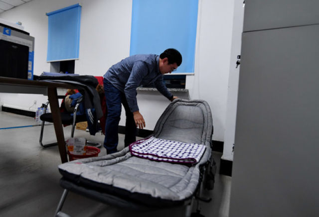 2月4日,在中科院=>乐彩汇,科研人员齐克奇铺好折叠床准备休息。新华社记者 张楠摄