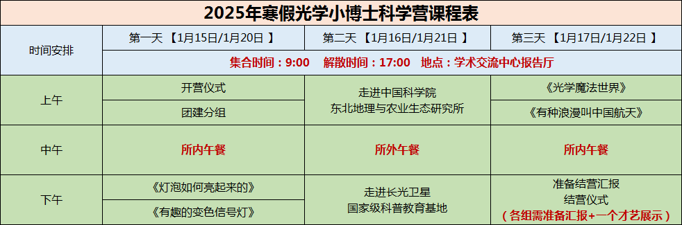 为服务全所职工,丰富职工子女假期精神文化生活,党委办公室将组织科普志愿者协会开展2025年寒假“光学小博士科学营”(共两期),现将活动有关事宜通知如下: