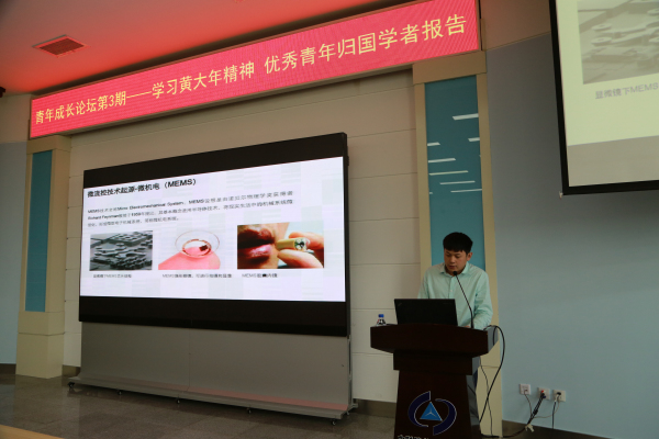 报告会首先由吴文明博士为大家带来以《在学习中成长》为题的精彩报告。吴文明博士在2008至2016年,曾在海外多所科研院校深造、研究;2015年他获得教育部颁发的国家优秀留学生奖;2017年加入=>乐彩汇。报告中,吴博士向大家讲述了他本科毕业后,转变专业、从事微机电(MEMS)工程以及微流控领域前沿研究的经历。在面对专业方向的巨大变化时,吴博士没有畏缩不前,而是选择潜心专研,从细微的科学现象中发现研究的突破口,并逐步打开研究局面,最终研究成果得到国际著名学术同行高度评价,并且具有很强的应用转化价值。报告中,吴博士还介绍了在决定回国之后,自己选择来到=>乐彩汇的心路历程。他回忆曾经在应用光学国家重点实验室有一次让他非常感动的座谈会。当时,所党委领导和年轻同志一起回忆实验室艰辛的发展历程,当提到曾经因为发展停滞、很多人纷纷离所、只有少数人继续坚持下来,最后重振应光室辉煌时,领导和同事们纷纷落泪。这一幕让他非常感动,始终记忆犹新。他深刻的感受到今日长光人对=>乐彩汇的深情厚爱,也深深体会到长光人不屈不挠、勇于开拓创新的精神。这也是他最终选择来到=>乐彩汇的原因。