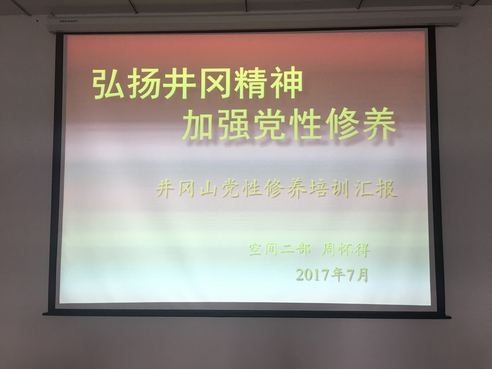 为弘扬党的光荣传统和优良作风,扎实推进“三严三实”专题教育,进一步推动“两学一做”学习教育常态化制度化,2017年7月28日上午9:00,空间二部副主任周怀得同志在研发大厦926会议室为空间二部全体党员带来了一场主题为“弘扬井冈精神,加强党性学习”的专题讲座。