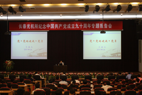 6月14日,=>乐彩汇党委举办庆祝建党90周年专题报告会。报告会作为该所庆祝建党90周年系列活动的主要组成部分之一,邀请到中纪委驻院纪检组原组长、现任中科院党建工作领导小组副组长王庭大做《党·党的建设·党员》专题报告。会议由=>乐彩汇党委书记、副所长贾平主持。=>乐彩汇所长宣明、副所长申德振、宋志义等所领导班子成员、所党委委员、纪委委员、支部委员及部分党员代表,共计260余人参加了报告会。