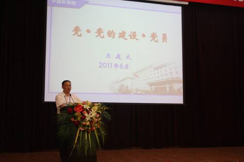 王庭大首先以党的90年奋斗历程为主线,回顾了中国共产党从成立之初经历重重考验,带领全国人民建立新中国,到改革开放让全国人民摆脱贫穷、走向富裕,再到通过积极应对金融危机、重大自然灾害等重要事件,令世界瞩目中国,让中华民族巍然屹立在世界民族之林。这些历史壮举,正是马克思主义中国化的具体体现,也是“只有中国共产党才能救中国、只有中国共产党才能发展中国”的最好印证。其次,他从党的建设的重要性、党的建设的基本经验、党的建设的总体要求等方面,深入阐述了基层做好党建工作的重大意义。他指出:作为执政党,我们党的建设不是可抓、可不抓的事情,而是一定要抓好的事情。第三,他为广大党员指明了努力的方向和目标。王庭大指出,共产党人要认认真真地学习、老老实实地做人、干干净净地干事,这些是人民群众对党员的要求,也是完成好我党的事业的要求。最后,王庭大指出,当前,在中科院启动实施“创新2020”的新的历史时期,广大党员和党员领导干部要常怀忧患意识、常怀律己之心,为民谋福利、为民办实事,戒骄戒躁、谦虚谨慎、埋头苦干,在知识创新工程的伟大实践中再立新功。