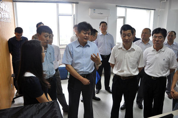 国家测绘地理信息局副局长李朋德(右三)一行参观长光辰芯光电技术有限公司