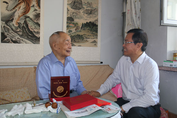 在纪念中国人民抗日战争暨世界反法西斯战争胜利70周年之际,根据中组部、中科院等通知精神,8月31日上午,=>乐彩汇党委书记、副所长马明亚,党委副书记、纪委书记金宏分别登门看望慰问了本所在长老红军、抗日时期参加革命工作的离休老干部,向他们致以崇高敬意和诚挚问候,感谢他们为党、国家的事业及本所的建设发展做出的巨大贡献,并转交了中共中央、国务院、中央军委颁发的中国人民抗日战争胜利70周年纪念章,送达了慰问金 。