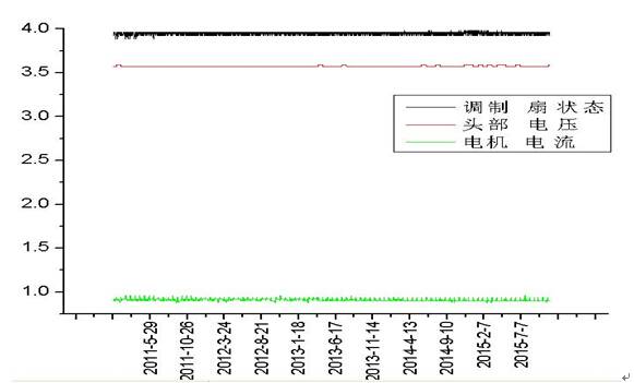 该仪器为扫描式双单色仪结构。5年来,由精密齿轮-凸轮-摆杆组合的波长扫描驱动机构累计运行超过210万次,调制器电机累计运行9.86108转。调制扇运行状态、电机电流和电源输出等核心遥测参数正常(图4),由此可见整套系统一直运行稳定。