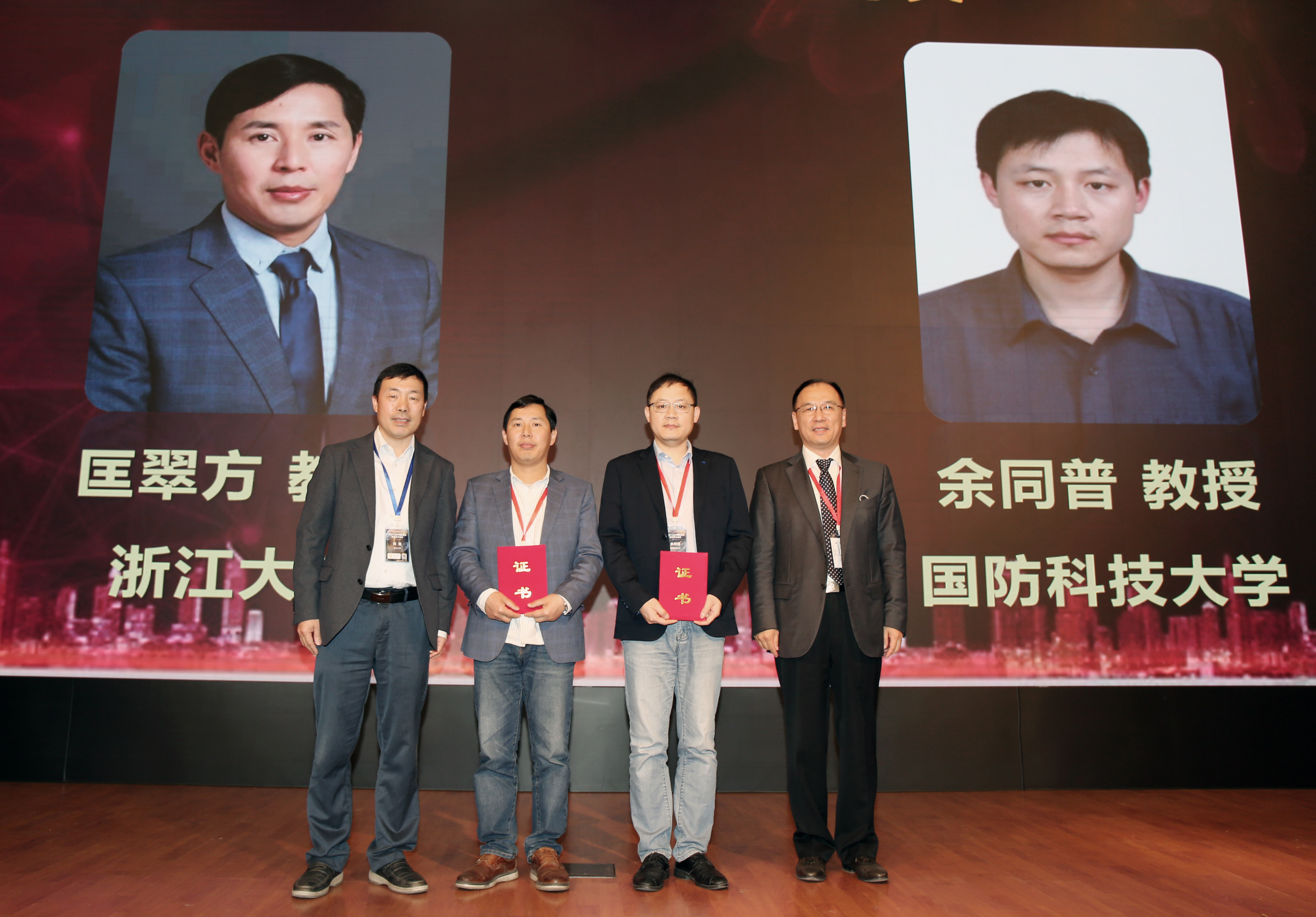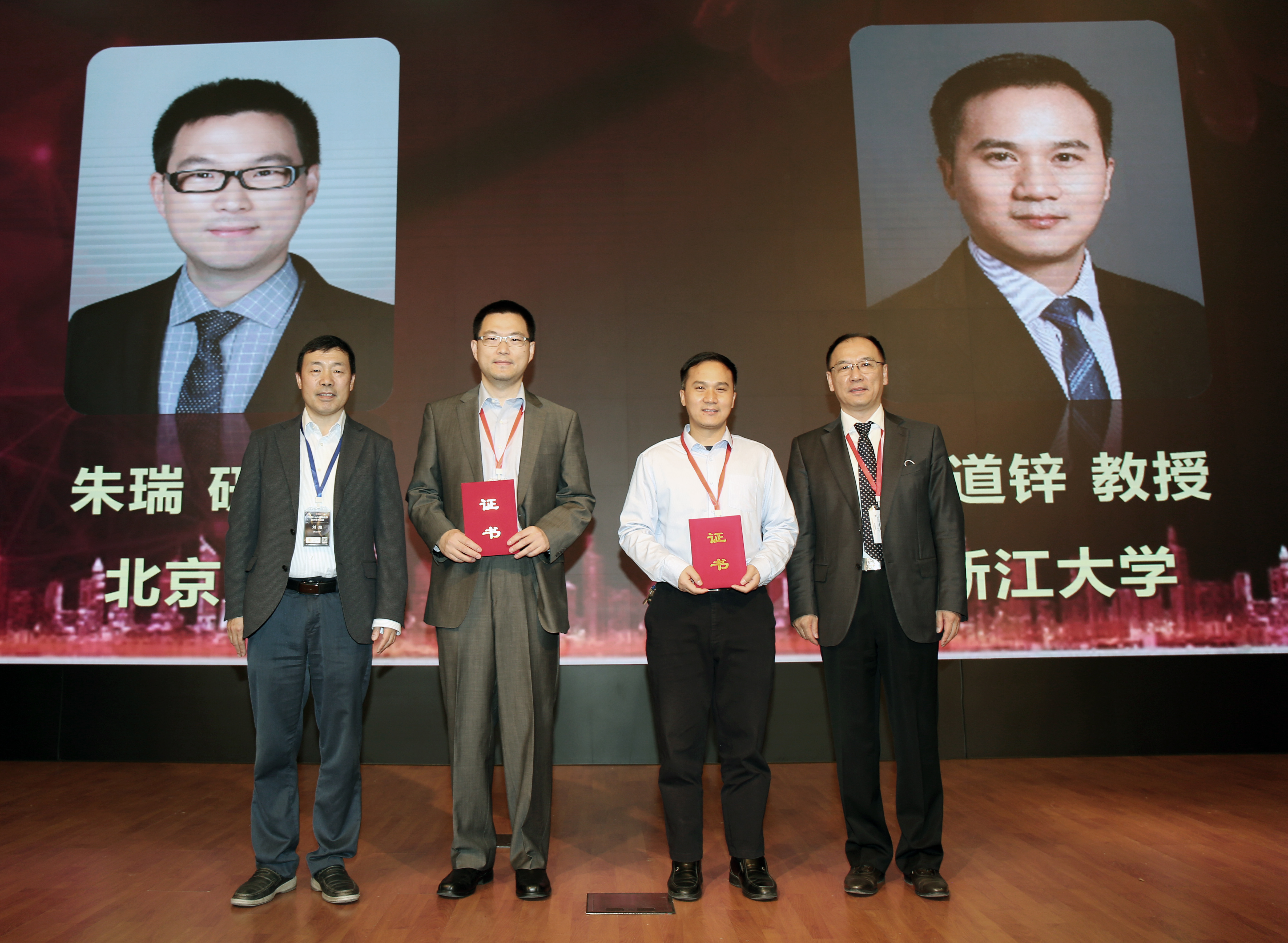 贾平所长与光学学会秘书长刘旭教授为大珩奖-中青年科技人员光学奖获得者颁奖