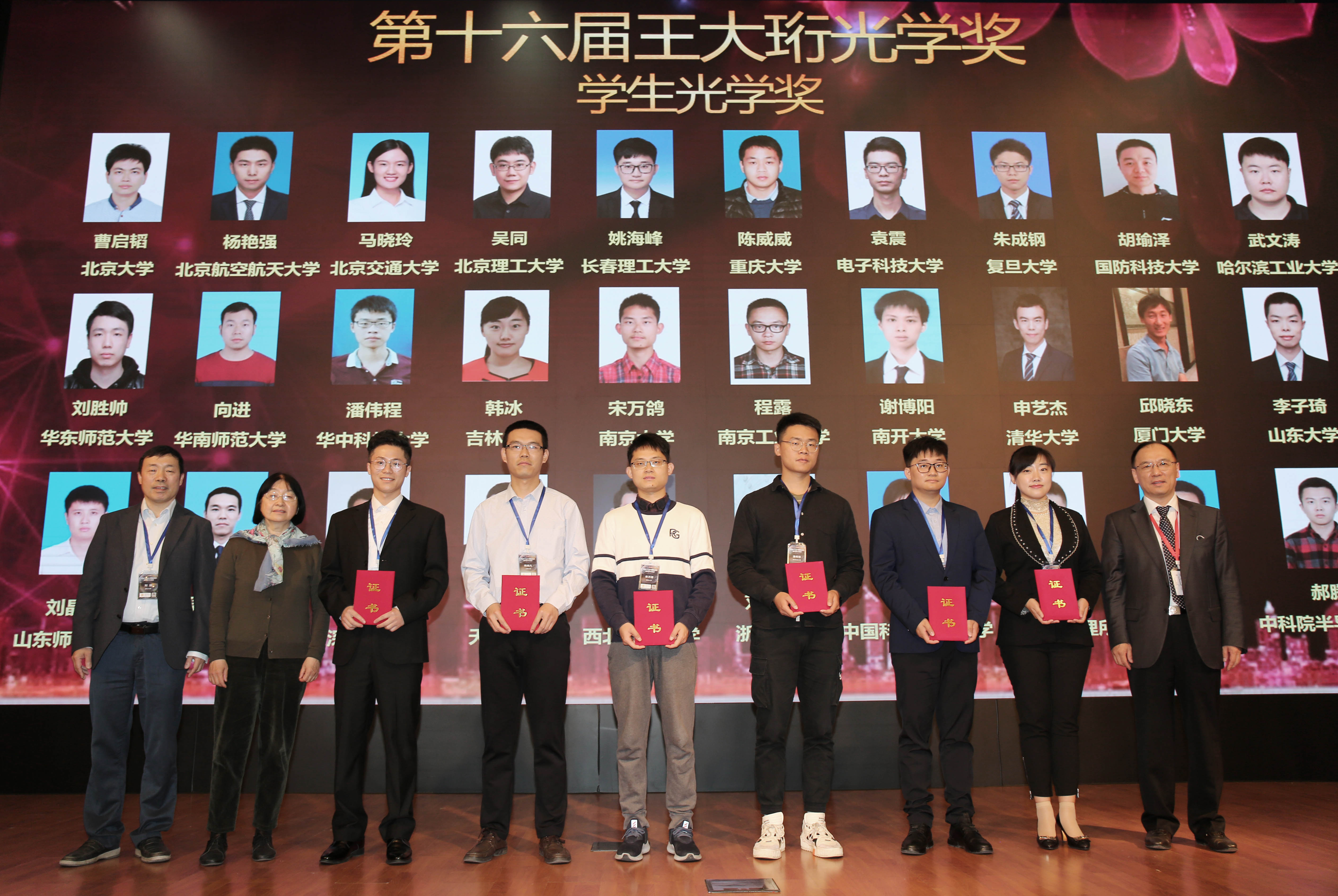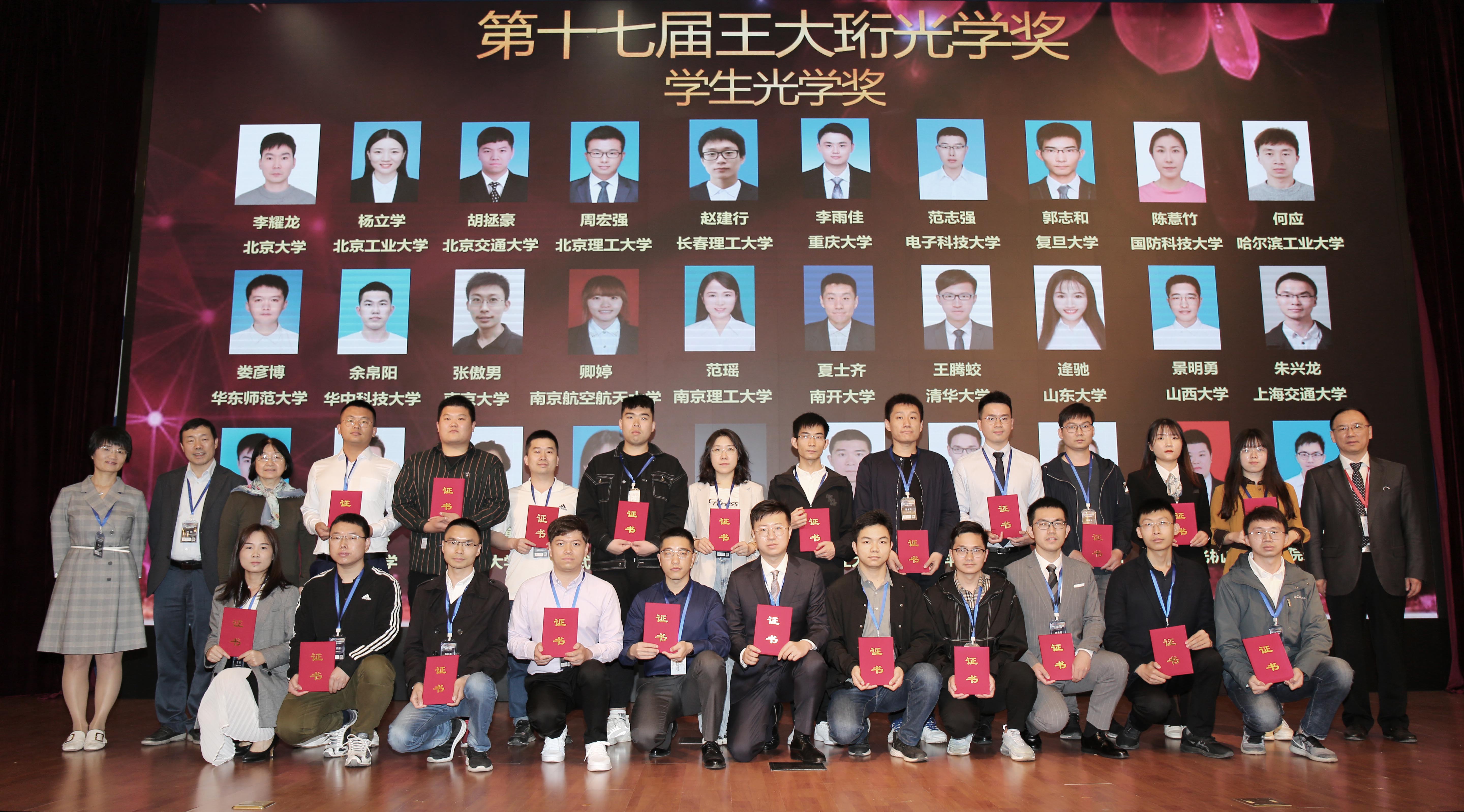 贾平所长、光学学会秘书长刘旭教授、国家天文台王森研究员为大珩奖-学生光学奖获得者颁奖