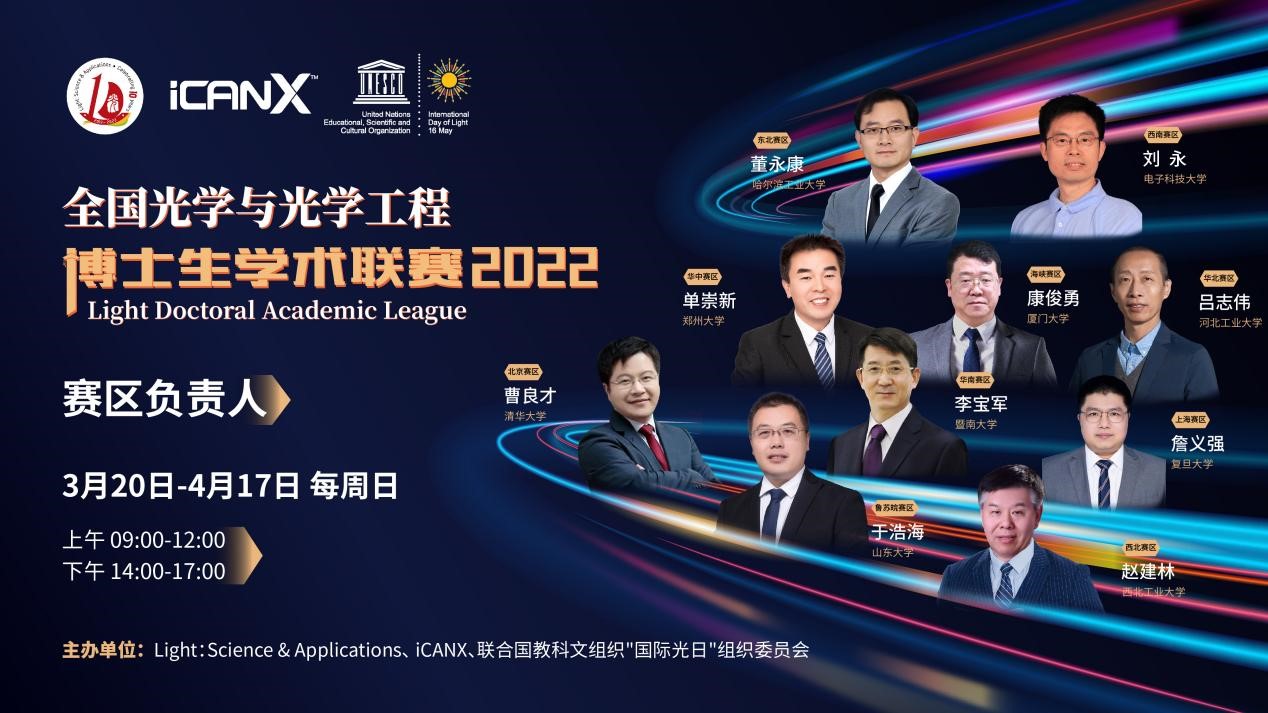 3月20日上午,由Light: Science & Applications(以下简称Light),iCANX,联合国教科文组织“国际光日”组织委员会联合主办,面向全国光学与光学工程及其交叉学科在读博士生举办的2022光学与光学工程博士生学术联赛-全国百强线上积分赛隆重启幕!
