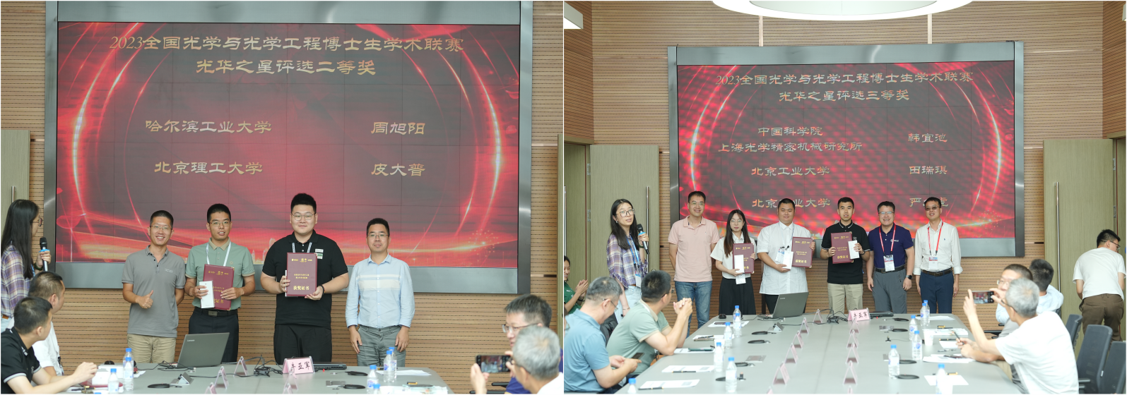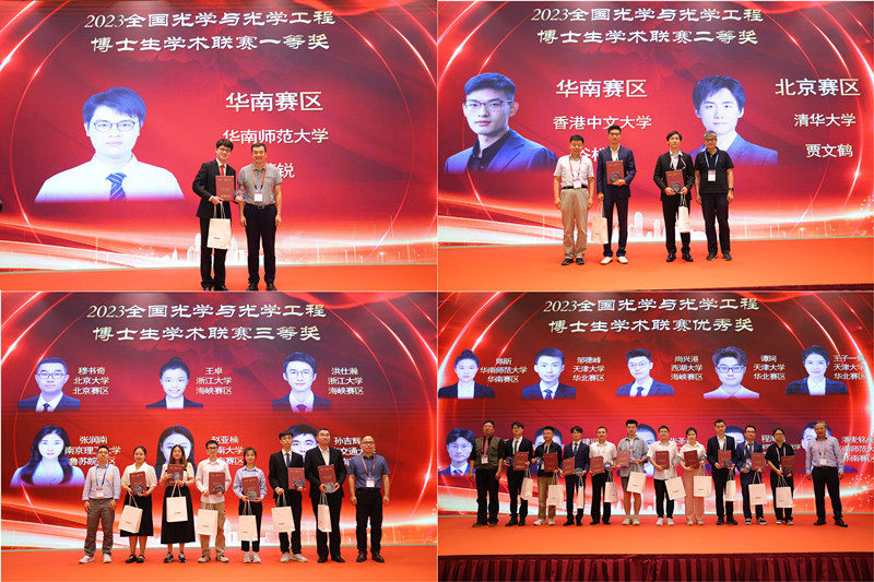 8月14日上午,举行了2023年全国光学与光学工程博士生学术联赛-光华之星选拔赛,旨在寻找光学成像与激光技术的明日之子。选拔赛由Light中心秦思主持,=>乐彩汇副所长王建立为开幕式致辞,经来自浙江大学、哈尔滨工业大学、北京理工大学等6位参赛选手的报告展示与答辩、评委专家们的认真考虑与严格评审,最终,来自华中科技大学的逄锦聪获得了本次学术联赛光华之星一等奖,哈尔滨工业大学周旭阳与北京理工大学皮大普获得了光华之星二等奖,中国科学院上海光机所韩宜池、北京工业大学田瑞琪与严久虎获得了光华之星三等奖。王建立副所长、华为终端有限公司唐玮博士与叶海水博士、清华大学曹良才教授、香港城市大学雷党愿教授、浙江大学刘智毅教授为获奖选手颁奖。至此,历时7个月、历经10大赛区选拔赛、10场线上百强积分赛、线下总决赛、光华之星选拔赛的2023年度全国光学与光学工程博士生学术联赛画上圆满句号。