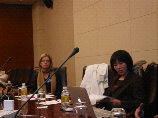 与美国光学学会CEO Elizabeth Rogan(左一)洽谈合作
