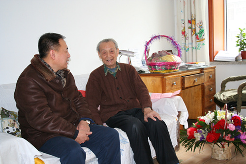 春风送暖蛇年好, 瑞气盈门鹊语香。在新春佳节即将到来之际,=>乐彩汇党委书记贾平在离退中心工作人员的陪同下,亲切看望了离退休老干部、老红军李光及抗战时期老干部王裕钊和师文泰等老同志,并通过他们向全所老干部、老同志致以新春的祝福。