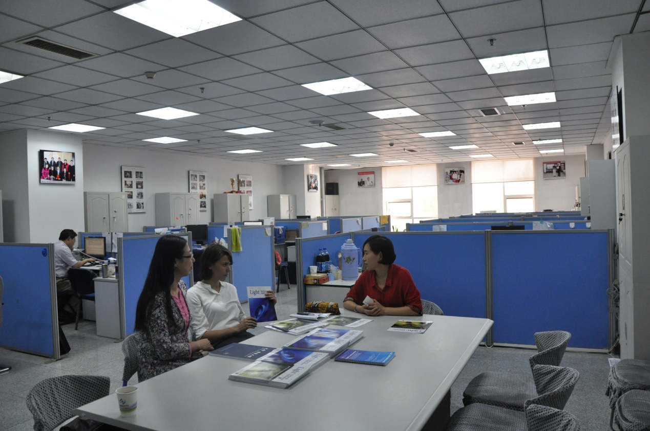 最后,史女士参观了长光所编辑部,信息中心副主任白雨虹研究员详细介绍了我所英文期刊Light的发展历程,当听到Light在如此短的时间内能够在国际光学类期刊中位列第四位且第一个影响因子为8.476时,史女士表示印象深刻,并邀请白雨虹研究员进行专题采访。