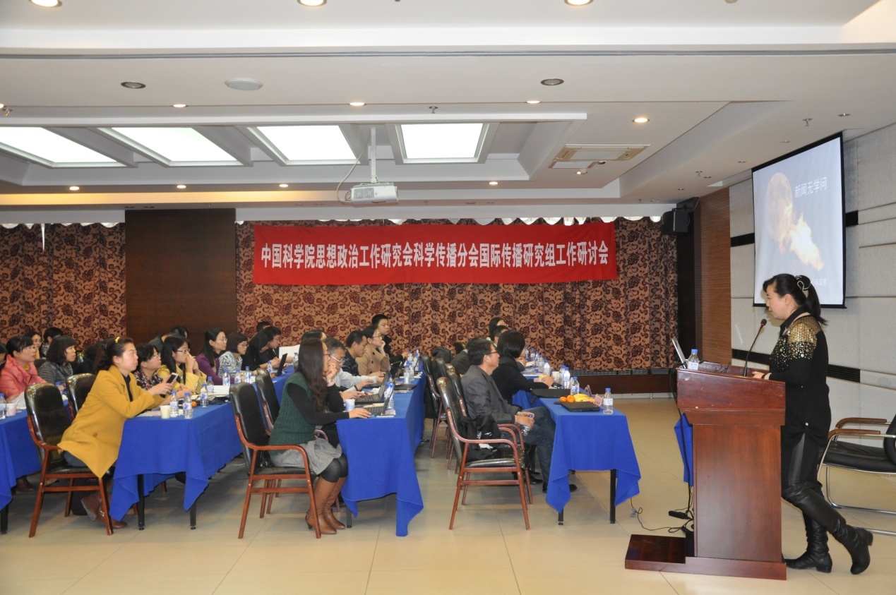 11月20日至21日,中国科学院思想政治工作研讨会科学传播分会国际传播研究组工作研讨会在=>乐彩汇成功举办。来自30余家院属科研单位共计40余人参加了此次研讨会。会议就我院“率先行动”计划实施以后不同类型的研究机构的国际传播规律和国际形象的塑造等问题进行了研讨。同时邀请了中国传媒大学研究院博士生导师、国际新闻研究所所长刘笑盈教授,国际广播电台新闻中心新闻节目制作部刘轶瑶主任做特邀报告。