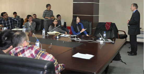 29日下午在研发大厦贵宾室,张学军副所长、国际合作处副处长张来明、王卉等热情地欢迎Paul Urbach教授的到来。张学军副所长介绍了我所所情并希望通过此次访问促进双方多个领域的合作。Paul Urbach教授首先感谢了张学军副所长的所情介绍,对未来双方在科学研究、学生联合培养等领域合作具有浓厚兴趣。