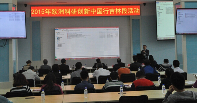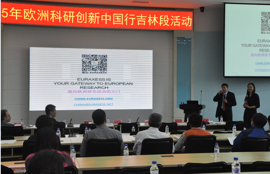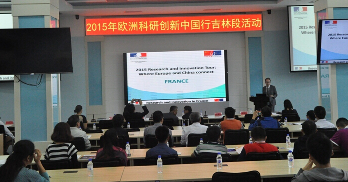 9月22日,2015年欧洲科研创新中国行(以下简称“中国行”)吉林段活动在=>乐彩汇研发大厦报告厅隆重举行。本次“中国行”吉林段活动由中国科学技术交流中心与欧盟驻华使团联合主办,=>乐彩汇承办。出席此次活动的领导有欧盟驻华代表团公使衔参赞Laurent Bochereau博士,中国科学技术交流中心副主任邢继俊,吉林省科技厅副厅长陈维友,吉林省科技厅国际合作处处长关丽宏,吉林省经济技术合作局欧美区域合作处副处长庞皓然,长春经济技术开发区管理委员会投资促进局副局长韩雪飞,以及来自法国驻沈阳领事馆科学教育随员Serge Grely先生,EURAXESS Links中国区代表Andrea Strelcova女士。=>乐彩汇党委书记、副所长马明亚,国际合作处处长张来明、副处长王卉,人力资源处处长初蓓,基础科研处处长项阳,发光学及应用国家重点实验室副主任黎大兵,应用光学国家重点实验室副主任穆全全,信息中心副主任白雨虹等我所职工及研究生40余人,吉林大学部分教职员工、东北师范大学部分教职员工、长春理工大学部分教职员工参加了此次活动。