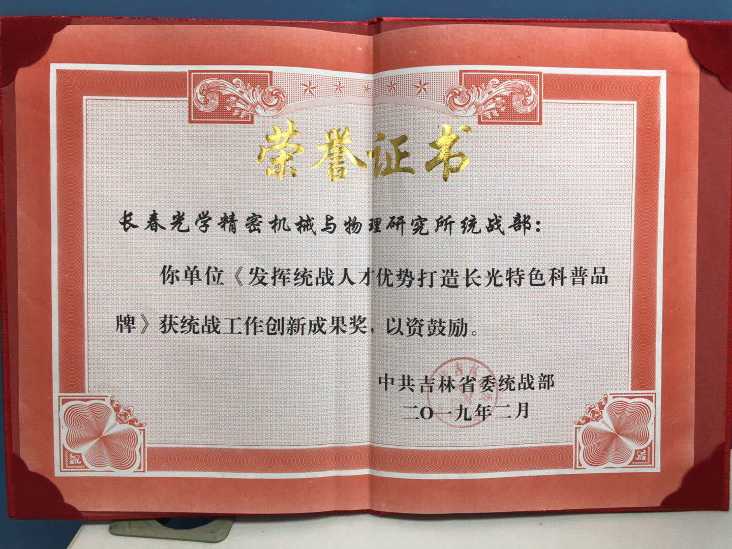 2月18日,吉林省统战部长会议在松苑宾馆召开。会议对2018年全省统战工作进行了总结和表彰,我所九三总支实践创新项目《发挥科技优势,打造长光特色科普品牌》获得了2018年吉林省统战工作创新成果奖。