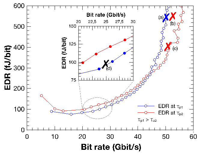 不同光子寿命VCSEL在不同传输速率下的能耗