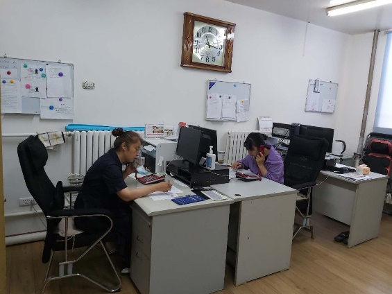 离退中心工作人员通过电话与老同志沟通情况