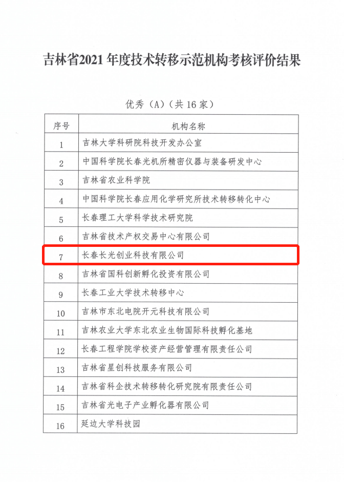 近日,吉林省科学技术厅发布了《关于公布吉林省2021年度技术转移示范机构考核评价结果的通知》(吉科发区〔2022〕148号),根据《吉林省技术转移示范机构考核评价办法(试行)》,经过机构自评、材料初审、专家评审等评价流程,确定16家机构考核结果为优秀、20家机构考核结果为良好、51家机构考核结果为合格、10家机构考核结果为不合格;长光T2T创业工作室在97家技术转移机构中脱颖而出,获评为优秀(A类)省级技术转移示范机构。据悉,本次评价中获评优秀(A类)的省级技术转移示范机构将被吉林省科学技术厅优先推荐申报国家级技术转移示范机构。