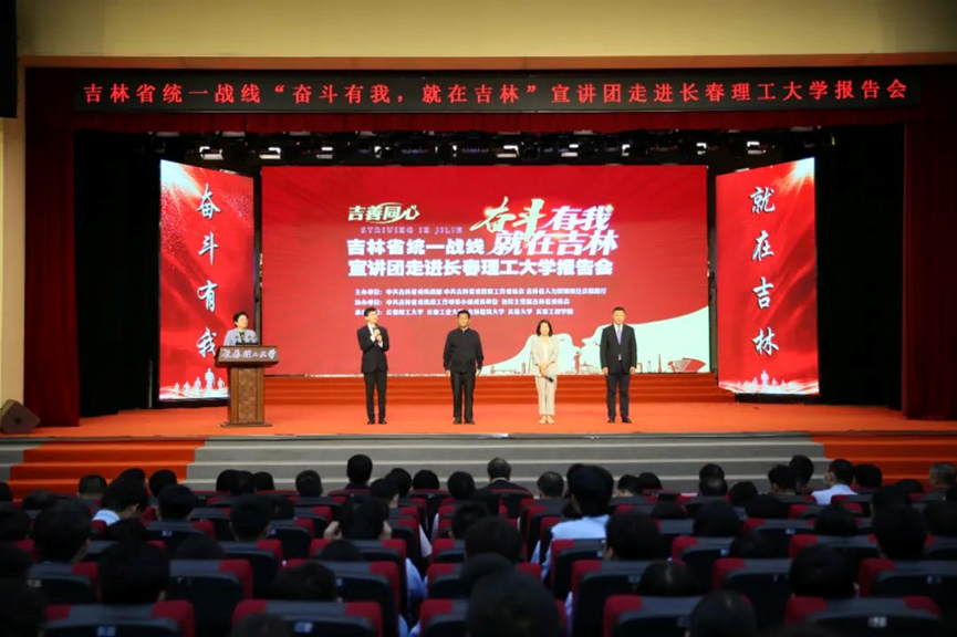 近日,由省委统战部、省委教育工委、省人社厅主办的全省统一战线“奋斗有我,就在吉林”宣讲报告会在长春理工大学举行,省委常委、统战部部长吴海英参加活动。学习贯彻习近平新时代中国特色社会主义思想主题教育省委第二巡回指导组组长彭永林带队到会指导。