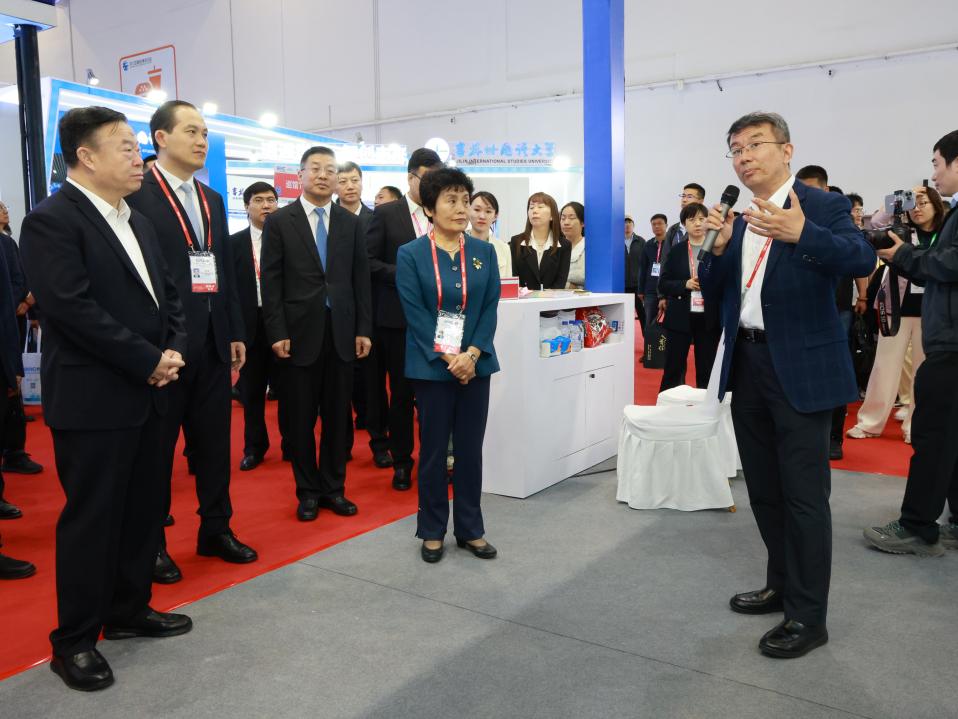 中国高等教育学会会长、教育部原党组成员、副部长林蕙青,吉林省委常委、长春市委书记张恩惠,吉林省副省长孙简,长春市委副书记、市长王子联莅临展位参观