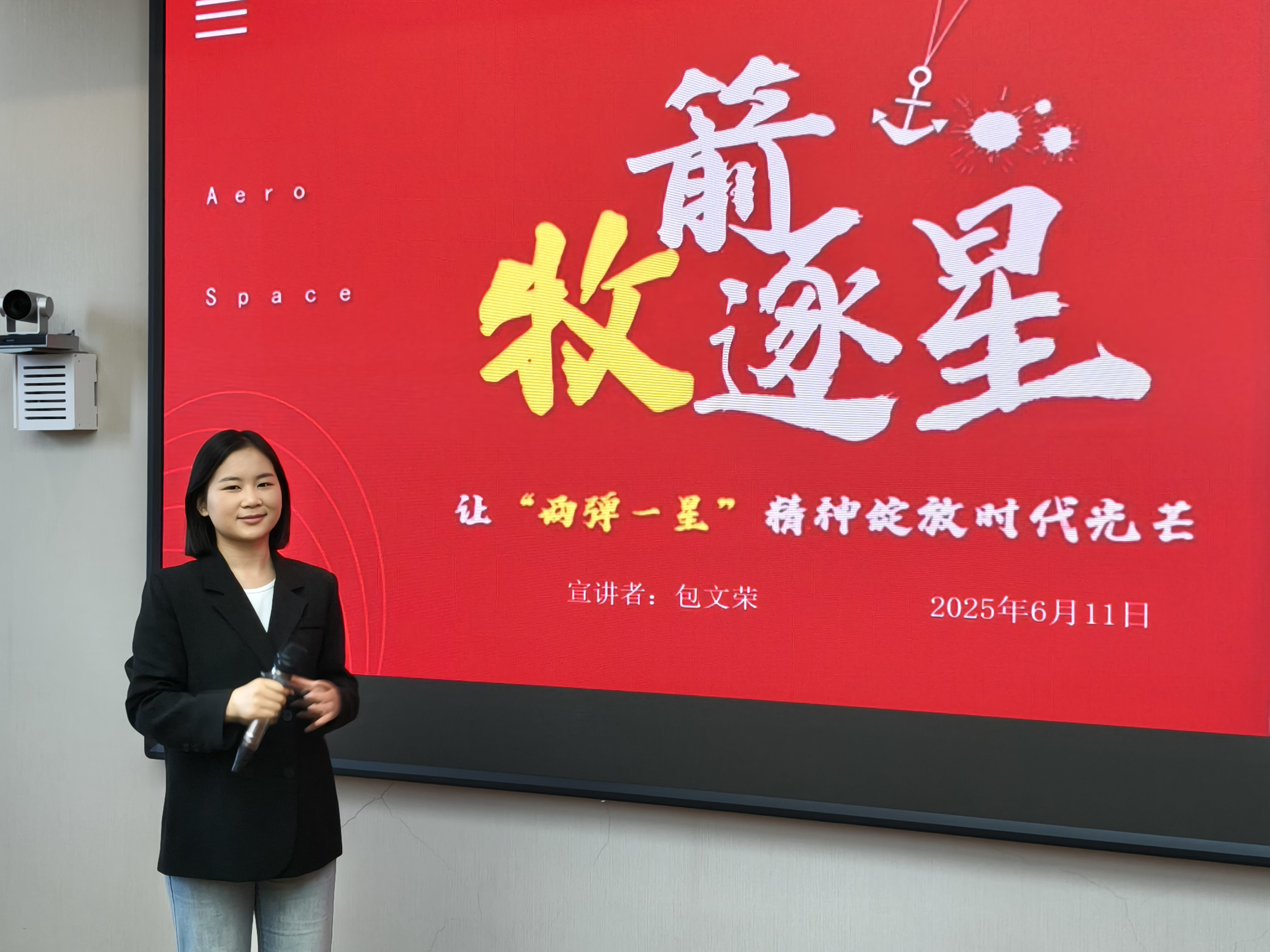 活动现场,本所博讲团成员包文荣以《牧箭逐星,让“两弹一星”精神绽放时代光芒》为题,从内蒙古东风航天城的飞天壮举切入,生动诠释中国航天人“牧箭逐星”的使命担当,深情回溯首任所长王大珩院士以1400万斤小米为起点奠基中国光学事业的奋斗史诗,并结合当代科研案例阐明精神传承的时代价值,引发青年共鸣。宣讲活动结束后,参会学生进行了交流研讨和主题参观。