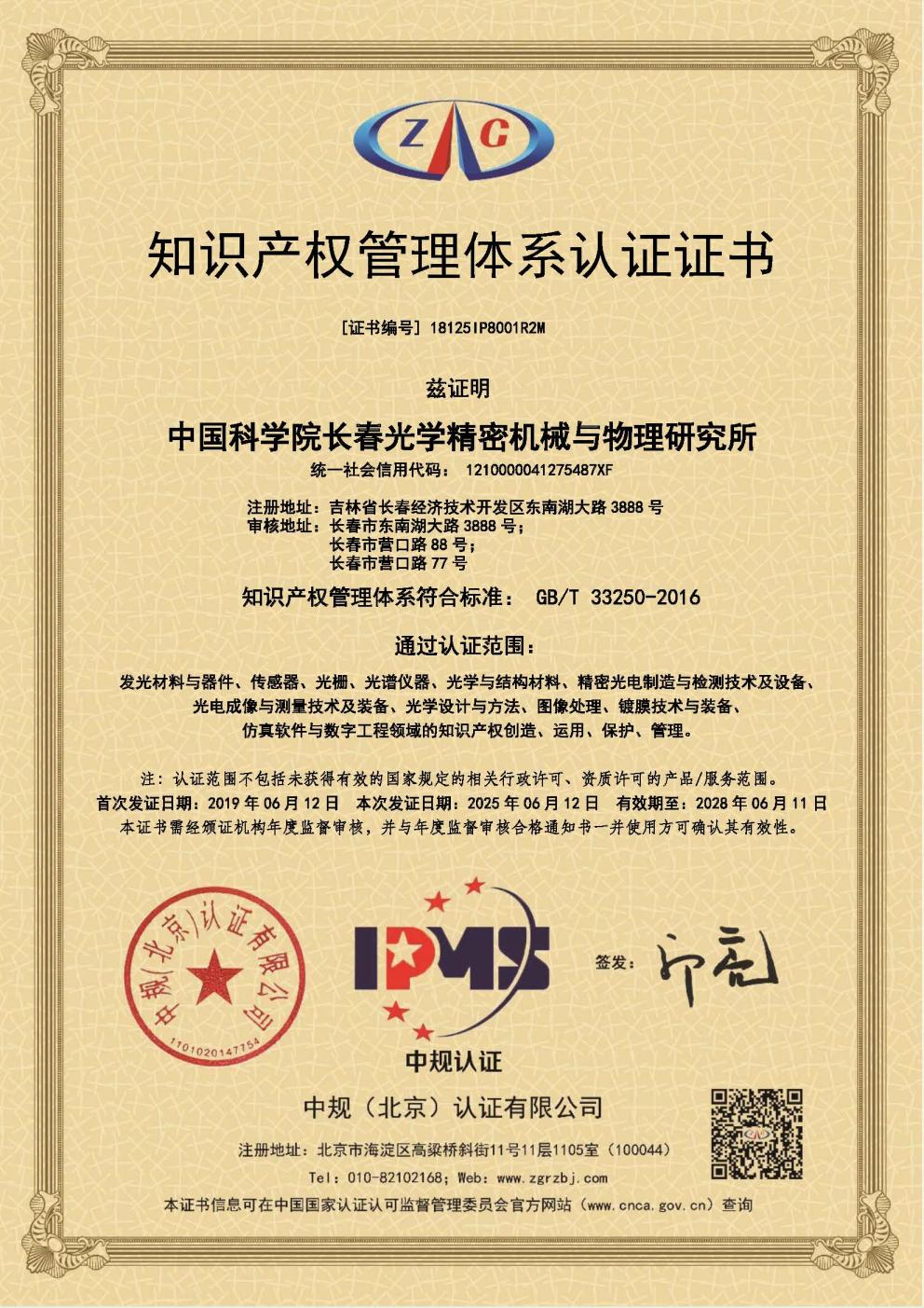 2025年6月12日,=>乐彩汇获得了由中规(北京)认证有限公司颁发的知识产权管理体系认证证书。