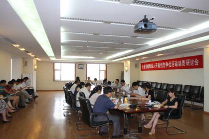 贾平书记首先传达了院党组关于深入开展创先争优活动的文件精神,并对本所开展创先争优活动进行了全面部署。随后,各支部书记就本所如何开展好创先争优活动进行了研讨。各支部书记主要就对活动的意义的认识、活动载体的设计和活动的组织形式等进行了热烈的讨论。