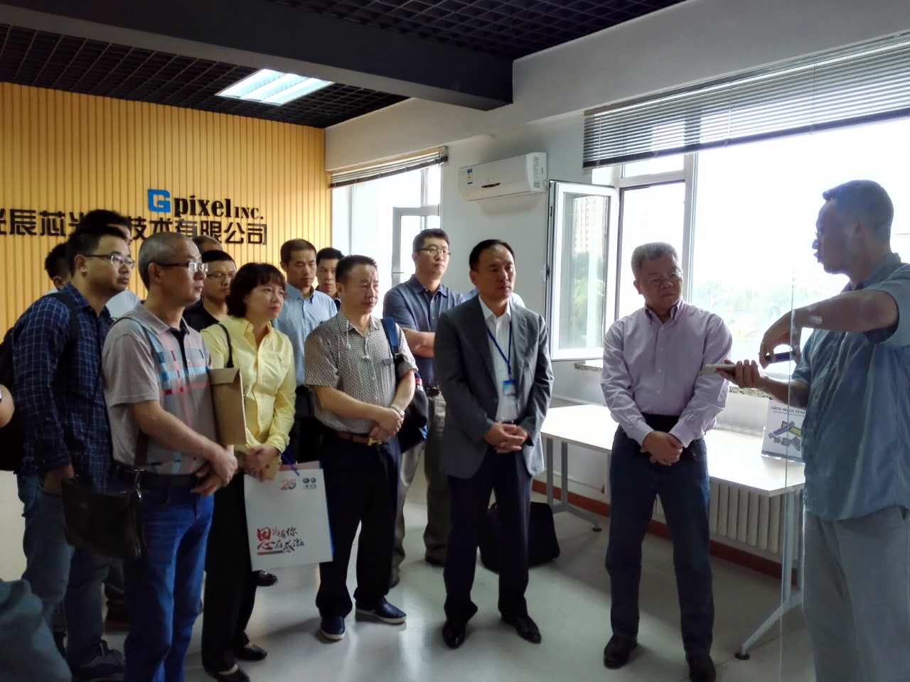 刘铭恩副区长(右二)率参访团在贾平所长(右三)等陪同下参观辰芯公司
