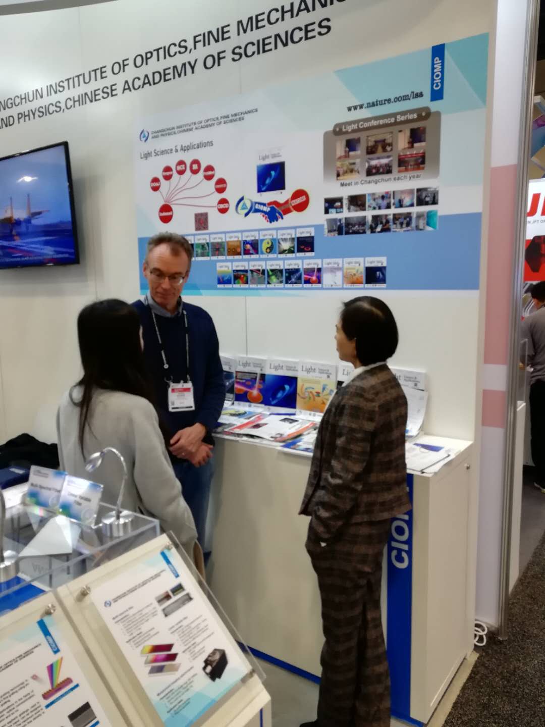 =>乐彩汇及所属企业长光辰英公司参加本次展会,展示了中阶梯光栅、AMS3000大视场立体航摄系统、高光谱与高空间分辨率CO2探测仪、高分六号宽视场相机、机械手、珠海一号相机、超轻量化SiC反射镜、细胞精准分选仪等共计10项产品和技术。同时,期刊Light作为亮丽名片,吸引了众多科学家前来沟通交流,展示了Light的国际影响力。